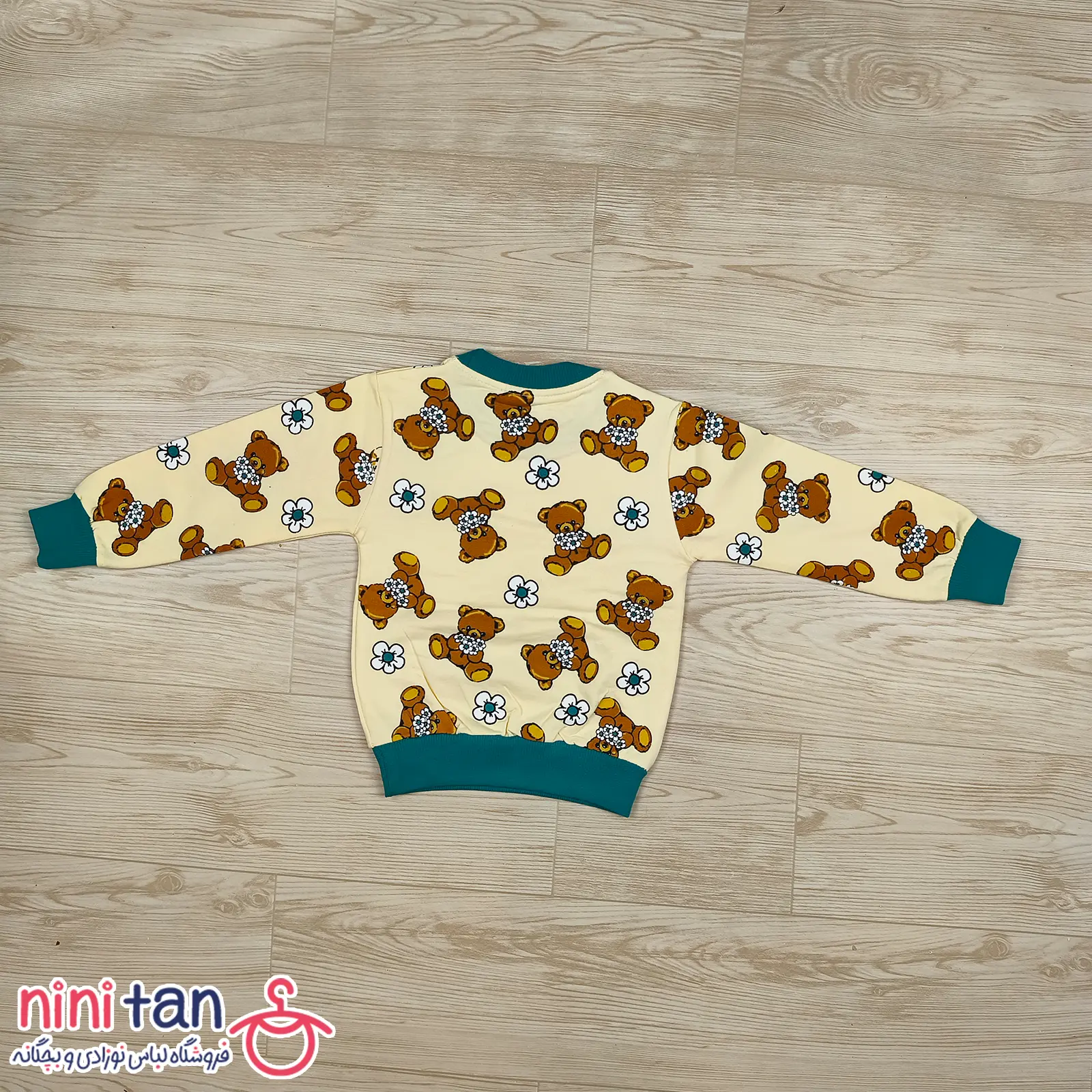 بلوز شلوار بچگانه دخترانه خرس و گل سایز ۳۵ تا ۵۰ – سبزآبی