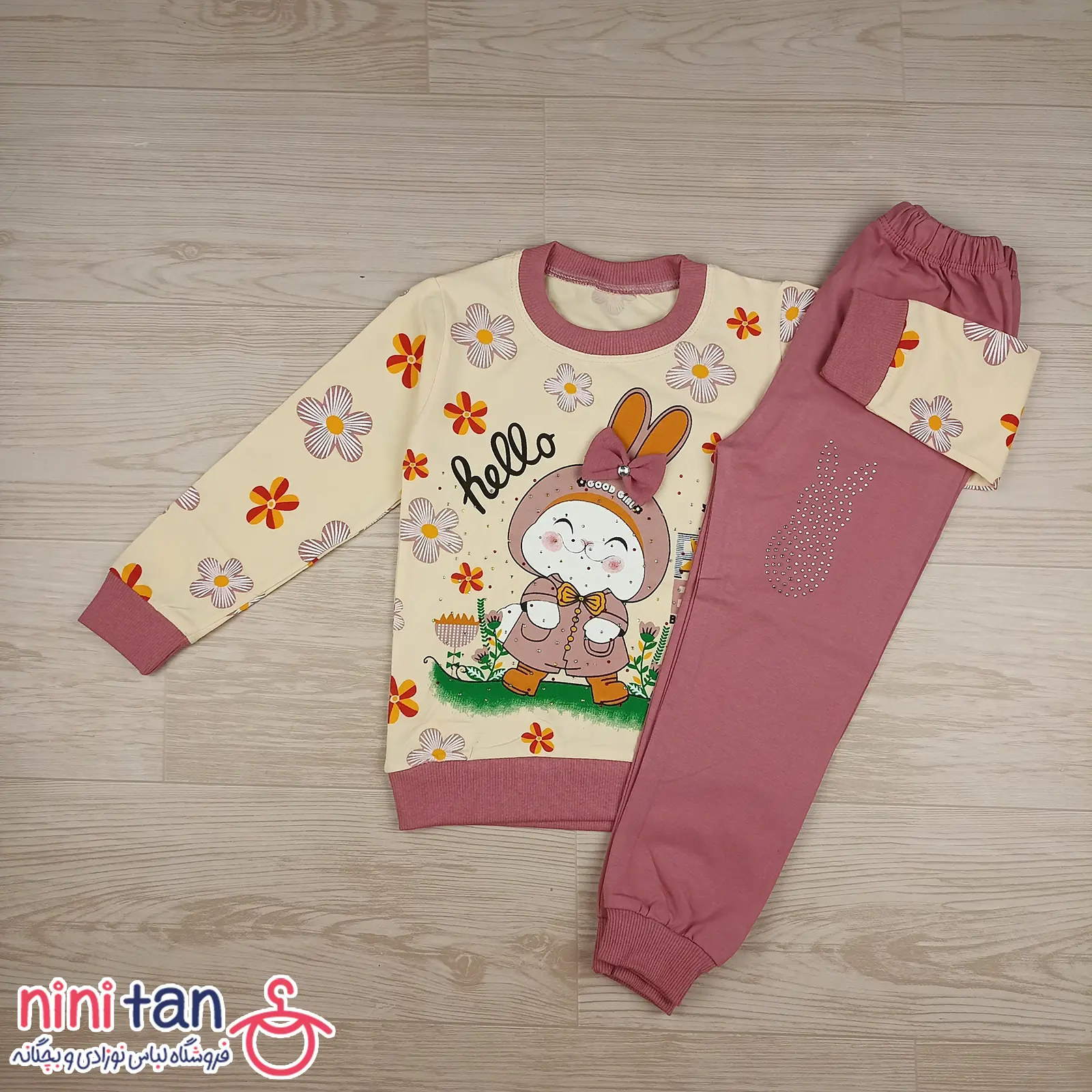 بلوز شلوار بچگانه دخترانه طرح خرگوش و پاپیون سایز ۳۵ تا ۵۰