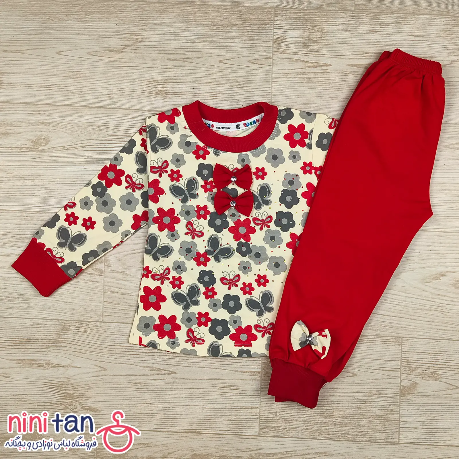 بلوز شلوار بچگانه دخترانه گل گلی سایز ۳۵ تا ۵۰ – قرمز