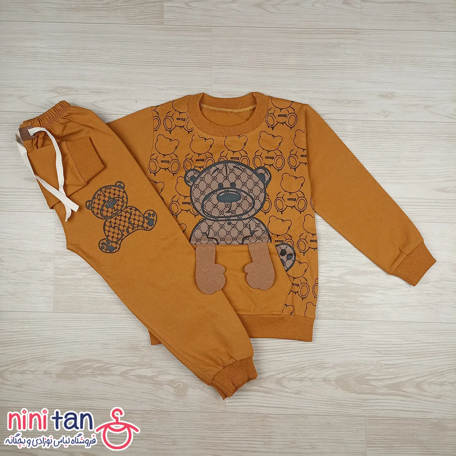 بلوز شلوار بچگانه طرح خرس گوچی سایز ۳۵ تا ۴۵ – شتری