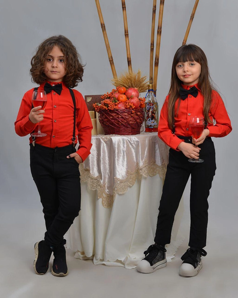 ۴ تیکه : بلوز – شلوار – پاپیون – ساسبند